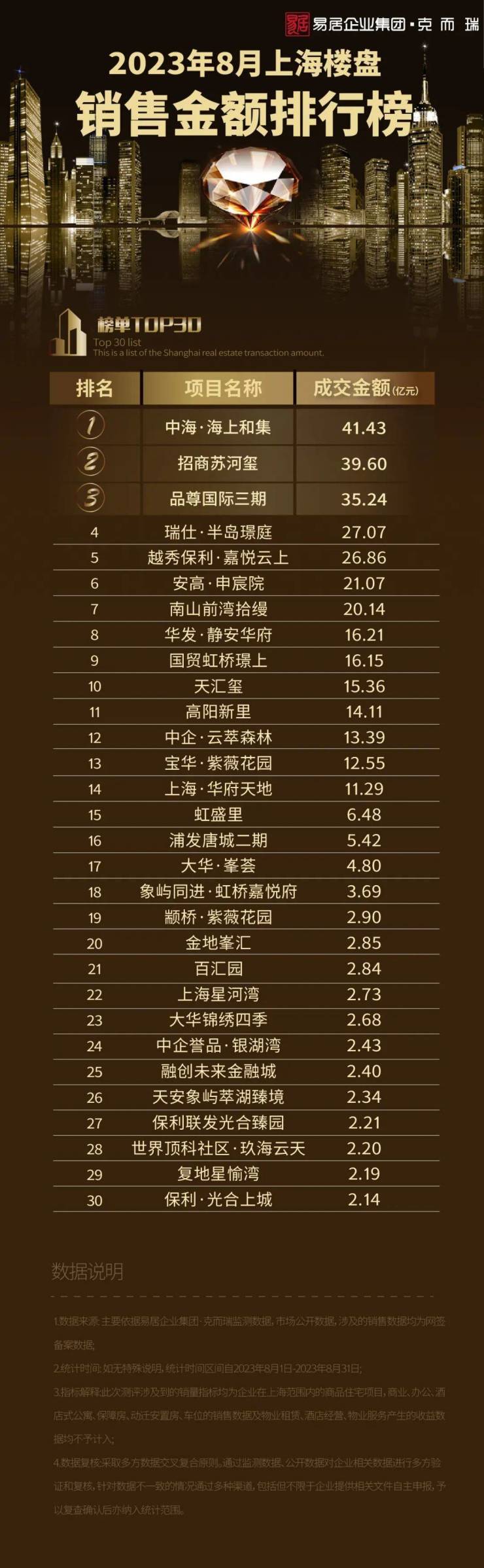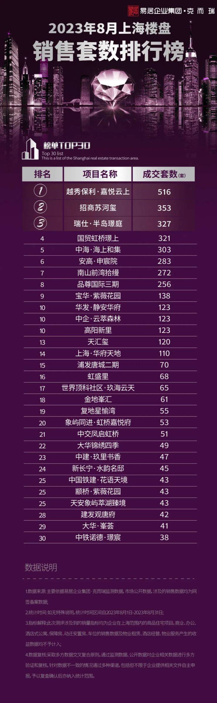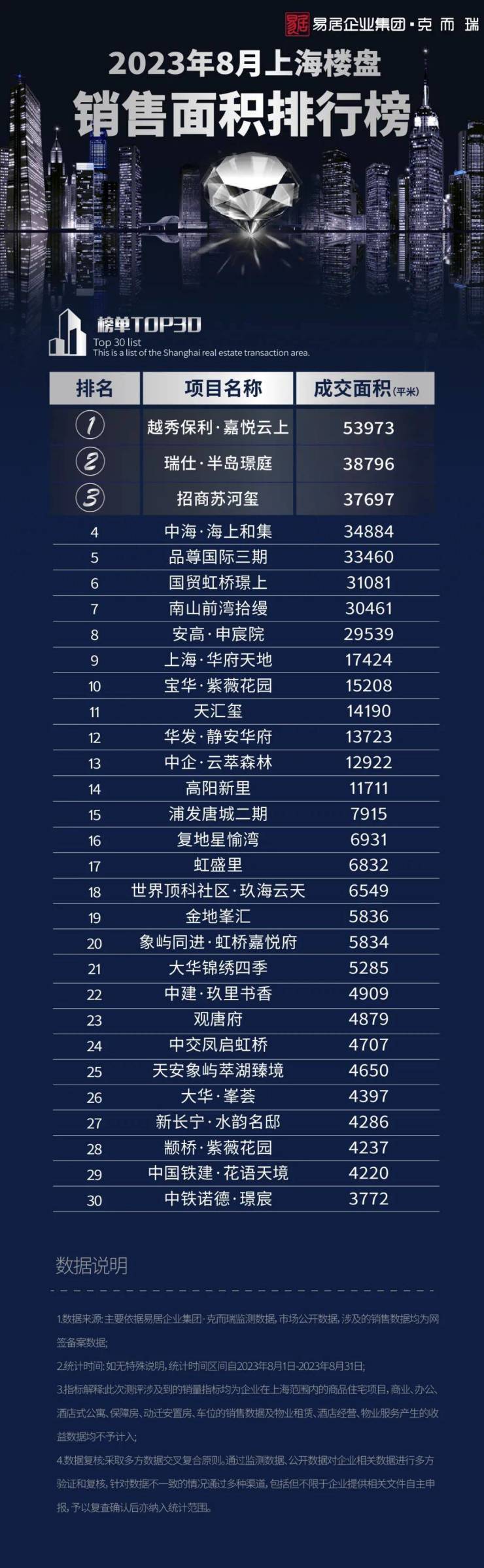 克而瑞|2023年8月上海楼盘销售排行TOP30