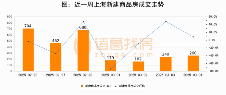 【上海成交日报】03月04日新房成交260套、二手房696套;涨价房源5966套