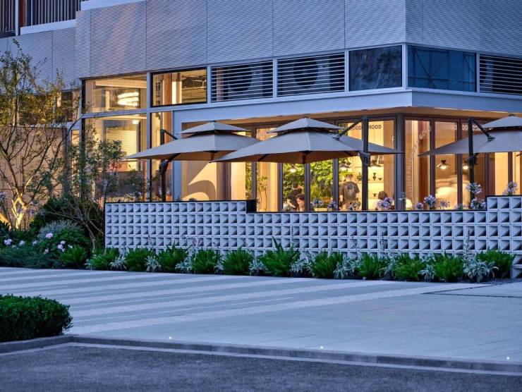 流体一般的商办空间,正是以这个「超级十字路口」为中心,顺着市政道路向东南西北四个方向流淌。马路慢慢变成温暖的街道,在这条街道上,理想之地用优雅而细腻的街道场景框架,形成强大的「语境约束力」,以很有特色的商家与街巷,来作为住宅区与街道的「软边界」。
