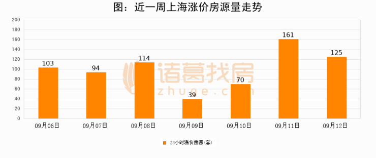 根据诸葛找房数据显示,上海24小时涨价房源量为125套,较09月11日减少36套,环比下降22.4%。与此同时,涨价房源占比小幅回落,对于购房者来说是一个入市窗口期,购房者可抓住时机入市。