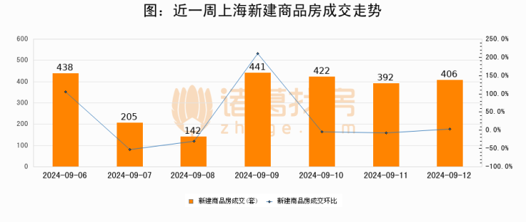 【上海成交日报】09月12日新房成交406套;涨价房源125套