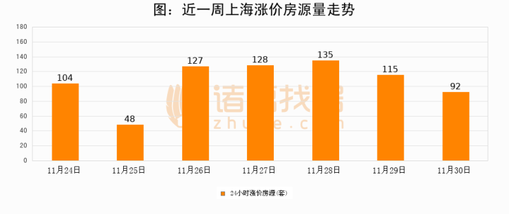 根据诸葛找房数据显示,上海24小时涨价房源量为92套,较11月29日减少23套,环比下降20%。与此同时,涨价房源占比小幅回落,对于购房者来说是一个入市窗口期,购房者可抓住时机入市。