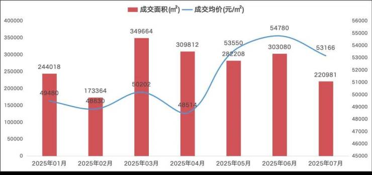 克而瑞数据显示,2025年1—7月,上海外环外商品住宅(含普通住宅、别墅)累计成交17024套,总面积188.31万平方米,成交均价51291元/平方米。