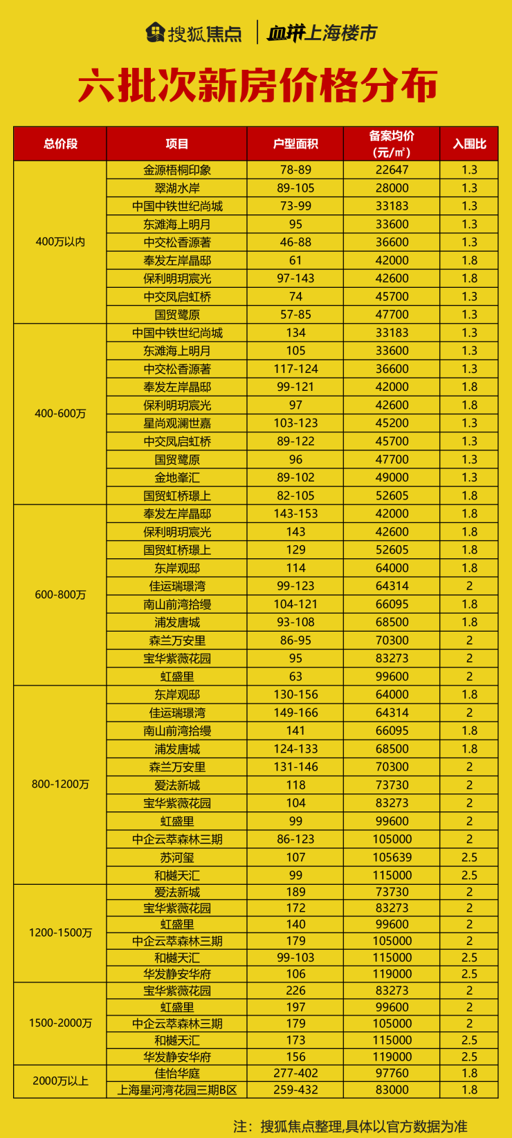 均价10万+新盘归来!六批次新房总价段分布来了!