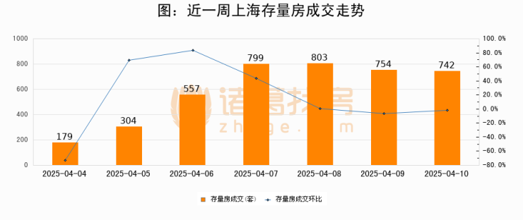 【上海成交日报】04月10日新房成交399套、二手房742套;涨价房源183套