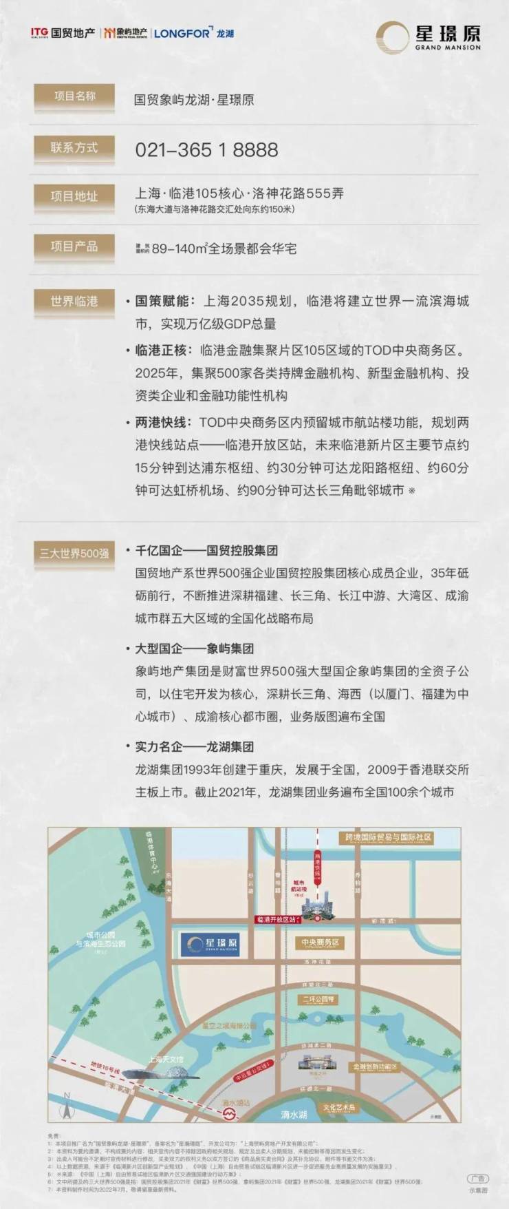 8、文中三大世界500强是指:国贸控股集团2021年《财富》世界500强,象屿集团2021年《财富》世界500强,龙湖集团2021年《财富》世界500强;