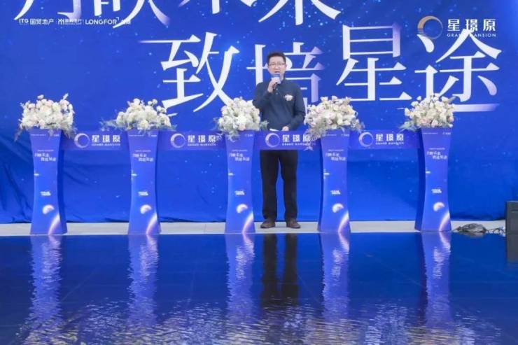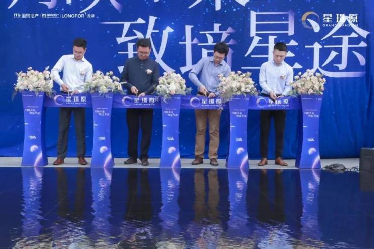 在现场热烈氛围的簇拥下,项目总经理唐晓峰先生上台致辞,为来宾们优质诠释了国贸象屿龙湖·星璟原的建造初心以及未来美好生活蓝图。随后,在主持人的引导下,各位领导共同上台剪彩。彩烟礼花,掌声雷动,所有的目光聚焦于此,热切的眼神中饱含着对美好的期待,至此,【星空艺术之境】营销中心正式开放!