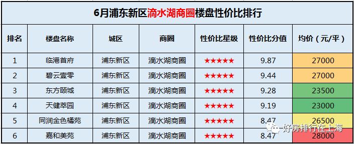 下面是好房排行根据普通住宅性价比评估系统整理的南汇滴水湖商圈在售楼盘性价比情况,滴水湖商圈整体性价比非常突出,临港首府、碧云壹零、东方颐城、天健翠园、嘉和美苑、同润金色橘苑等6个楼盘都达到五星级标准。