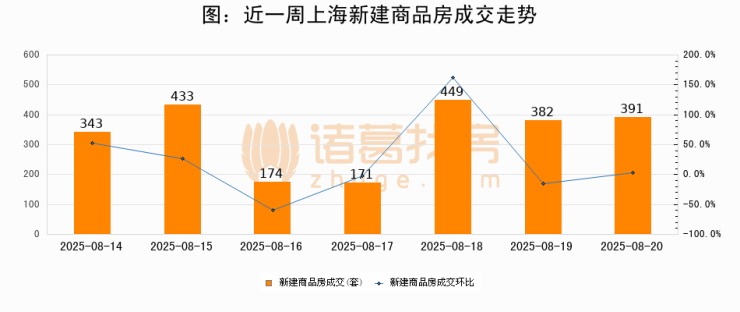 【上海成交日报】08月20日新房成交391套、二手房552套;涨价房源130套