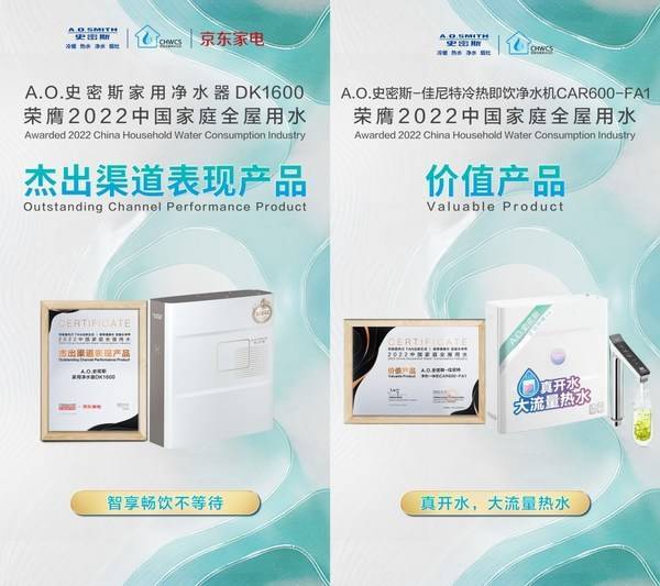 作为A.O.史密斯家族年轻时尚系列,A.O.史密斯-佳尼特致力于传承A.O.史密斯净水机的高品质与可靠性,在充分了解消费痛点之后,倾力研发,创新推出了冷热即饮净水机CAR600-FA1。该产品不仅高效节省了安装空间,在极简的环境中提供高品质、安全、充足的饮用水,而且还能即时将净水烧开,一键跨越了接水、烧水、灌水、等水凉等繁琐的步骤,让"随时喝热(开)水"这一梦想变成了触手可及的现实,当选"价值产品"可谓实至名归。A.O.史密斯净水家族的另一款明星产品DK1600,凭借"MAX4.0反渗透滤芯、1.6升大流量、IOT智能控制"等多项核心技术,也以突出的市场表现当选"渠道杰出表现"奖。
