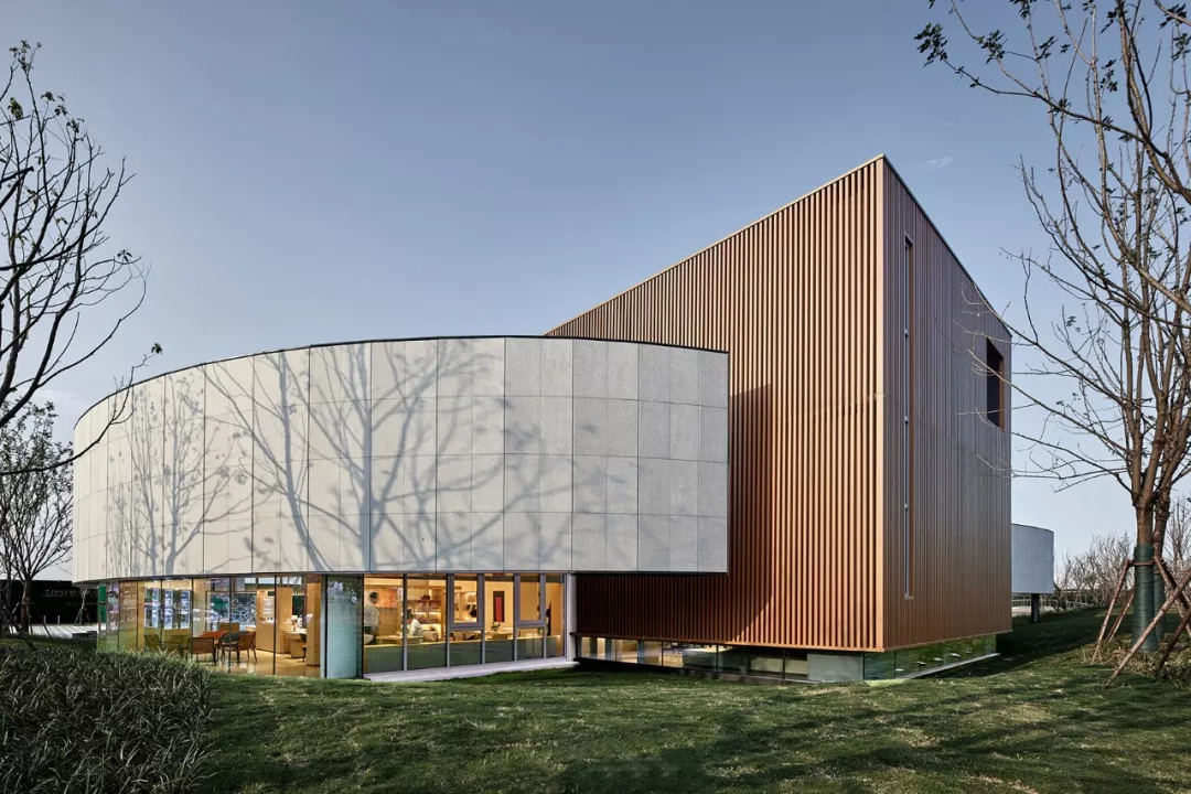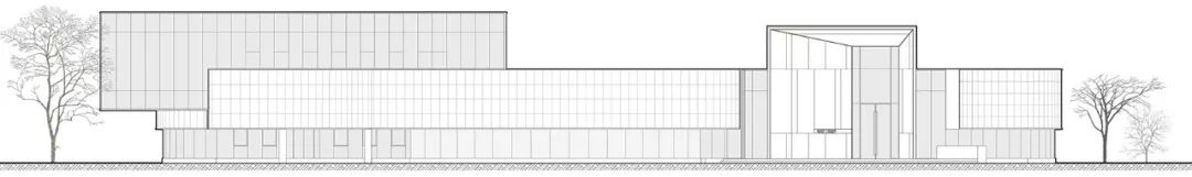 南侧立面形象,面向快速路,以舒展体量为主,点缀木质 ©曾江河
