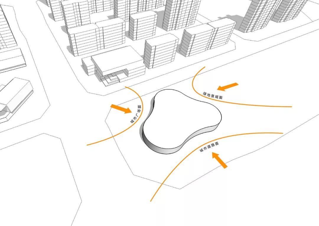 向集群中心退让,形成城市广场,吸引人活动 ©曾江河