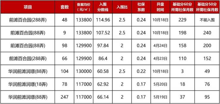 前滩百合园114.96分的入围分,是上海自积分制以来历史第二高的入围分,仅次于云锦东方(118.32分),略高于凯德茂名公馆(114.72分)。