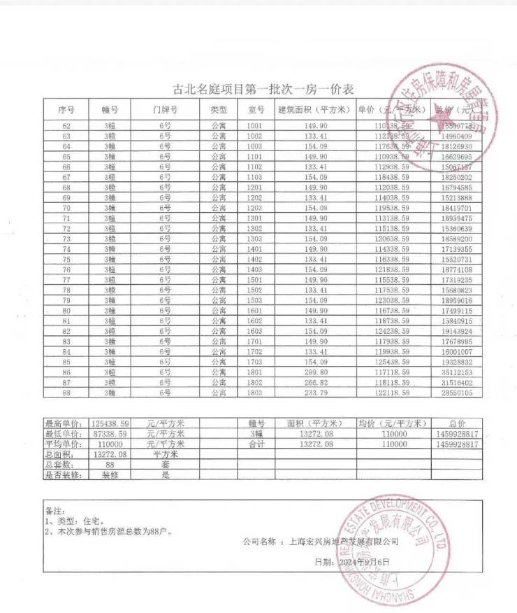10月10日开启认购!古北99低密精装平层,一房一价表曝光