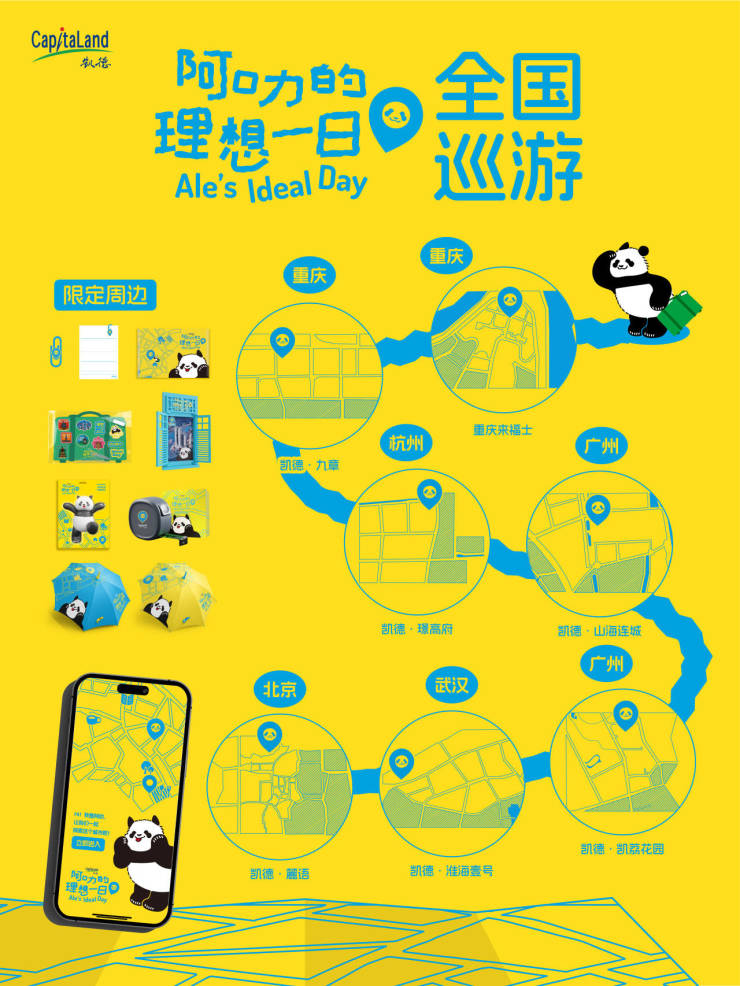 承接重庆来福士线下活动的情感热度,凯德发展将深度沟通引向全国,自7月28日起,覆盖全国7个住宅项目的“阿叻的理想一日”同步启动。作为活动的绝对主角,凯德集团IP“熊猫阿叻”以其憨厚可爱的形象,化身“理想生活体验官”,穿梭于各个社区场景之中,更将凯德发展倡导的“美好生活”理念进行了具象化、情感化的传达。客户通过与阿叻的虚拟互动,增强了对于品牌的情感认同,使得品牌形象更加丰满和亲切。
