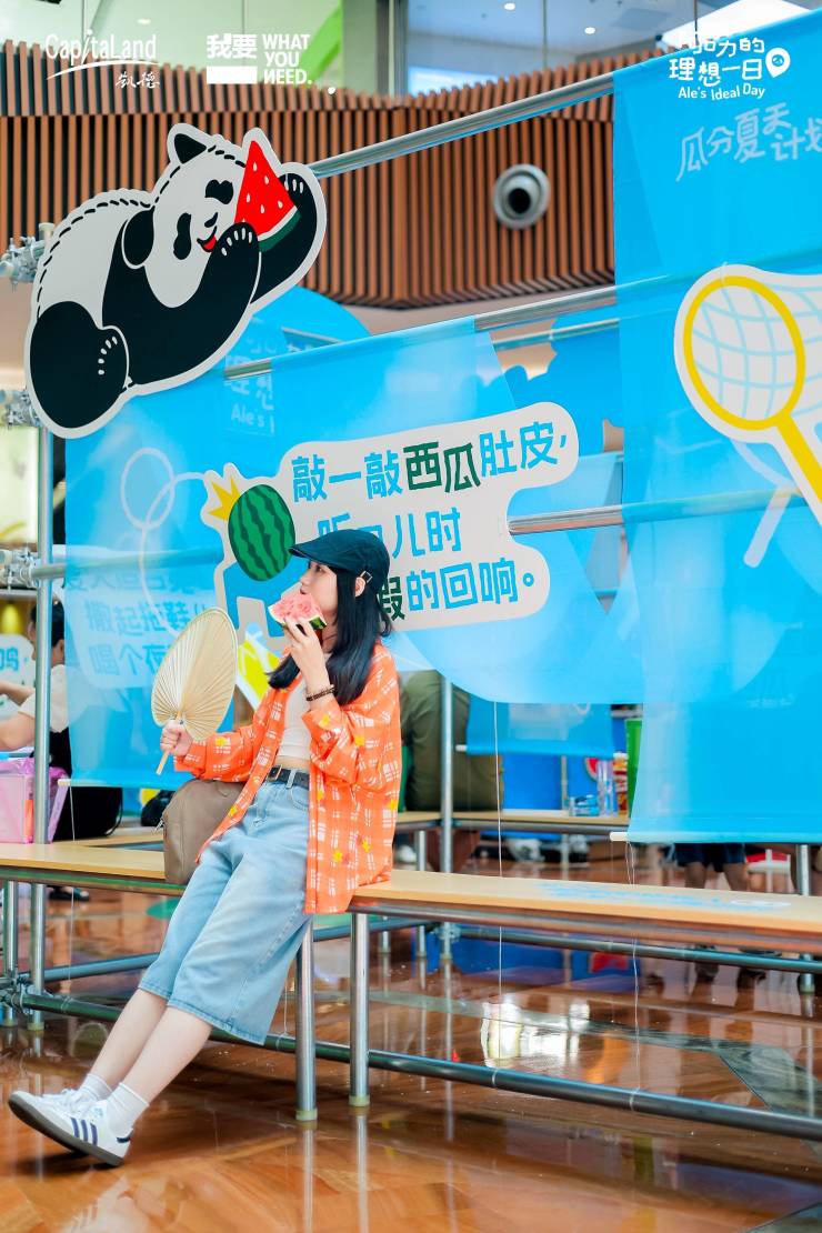 7月25日-7月27日,凯德发展与知名青年媒体“我要WhatYouNeed”联手,在重庆来福士购物中心长江中庭内创设了一个充满夏日古早味的治愈社交空间。活动鼓励消费者写下自己夏天中的“理想一日”,即可获赠一份清凉西瓜,极具夏日仪式感的“吃瓜”行为,迅速引发年轻人共鸣。
