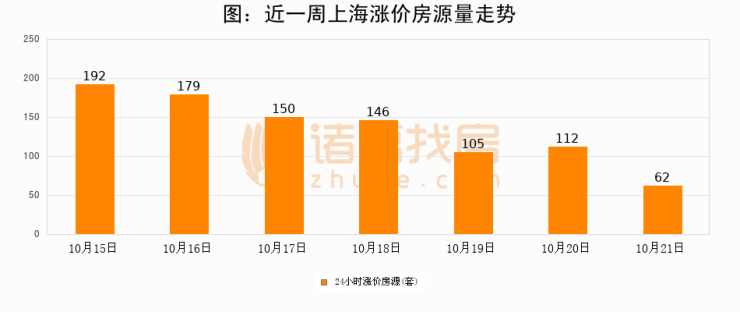 根据诸葛找房数据显示,上海24小时涨价房源量为62套,较10月20日减少50套,环比下降44.6%。与此同时,涨价房源占比小幅回落,对于购房者来说是一个入市窗口期,购房者可抓住时机入市。