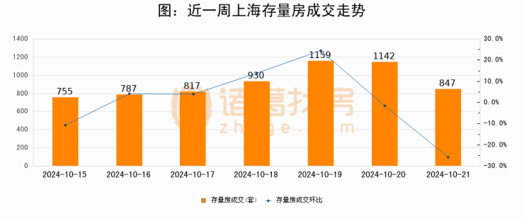 【上海成交日报】10月21日新房成交444套、二手房847套;涨价房源62套