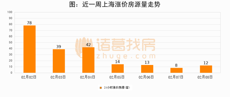 根据诸葛找房数据显示,上海24小时涨价房源量为12套,较02月07日增加4套,环比上涨50%。与此同时,涨价房源占比小幅扩大,业主信心有所提升。