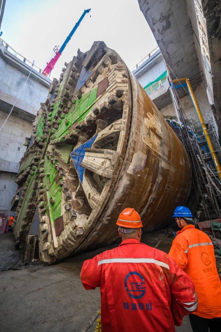 申通地铁集团介绍,3月13日上午,在上海轨道交通22号线(崇明线)位于崇明岛的北港大盾构接收井基坑内,经过长江江底长达9公里的长距离穿越后,直径13.5米的“申崇号”超大盾构机已于日前顺利抵达接收井,盾尾部分完全脱出洞门,宣告22号线(崇明线)工程北港越江大盾构区间隧道顺利贯通!这是上海轨道交通22号线建设过程中的一项重大突破,此前,“申通号”盾构已于去年顺利打通南港区间,而“申崇号”盾构机成功穿越长江,标志着崇明线穿越长江的隧道已经全部打通,为全线通车奠定了坚实基础。详见↓