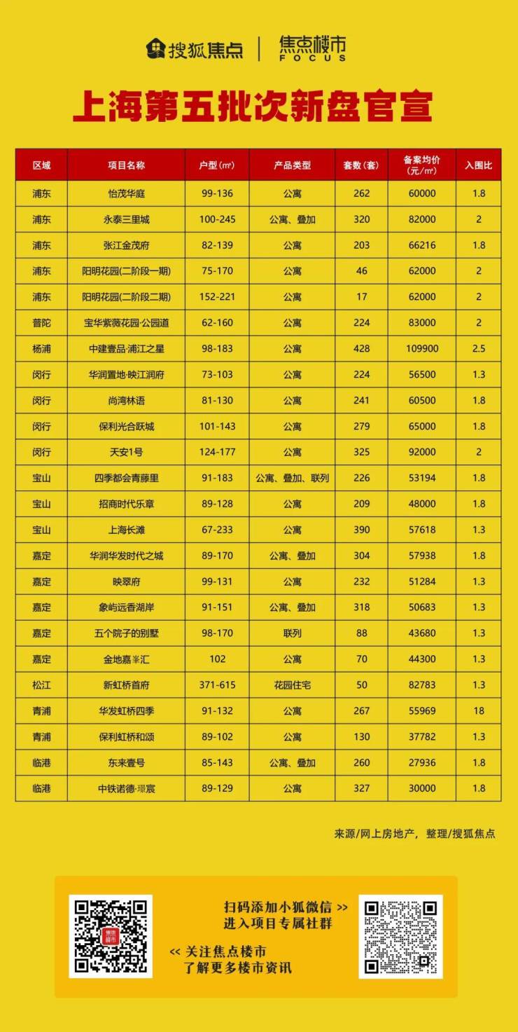 24盘,5440套房源!上海5批次新房入市名单官宣!