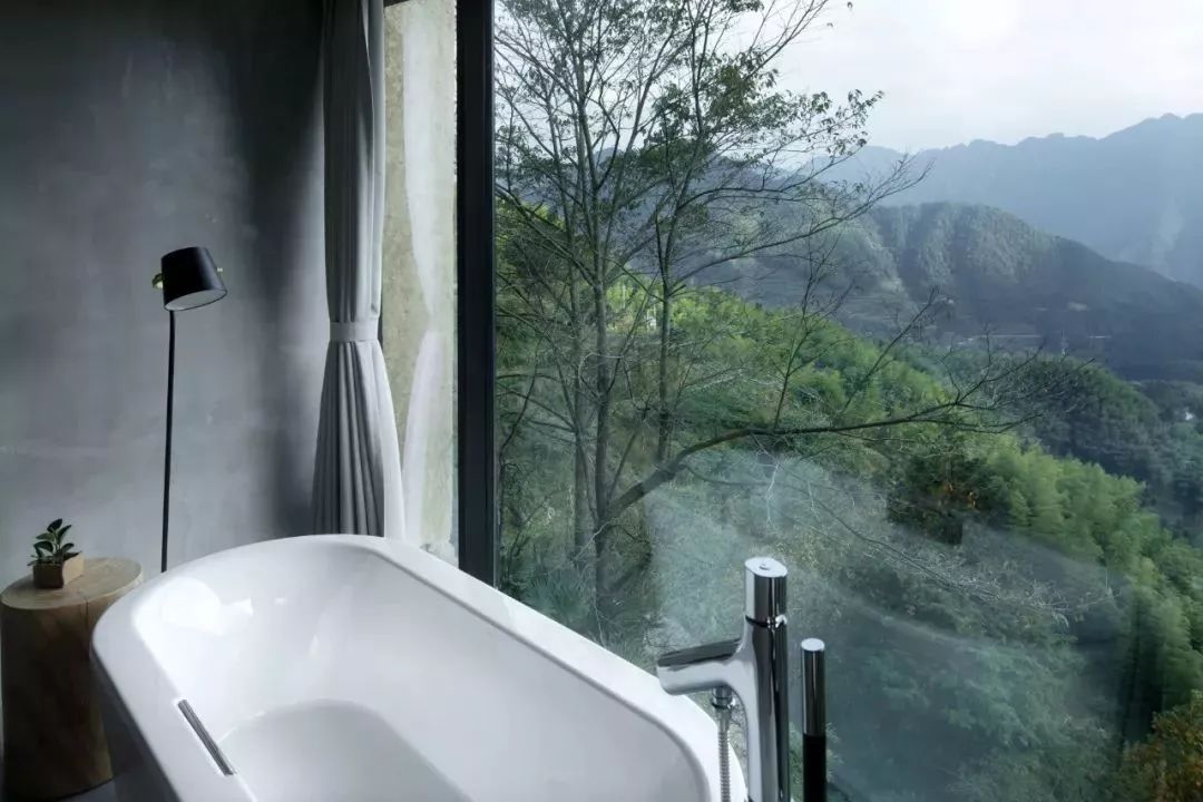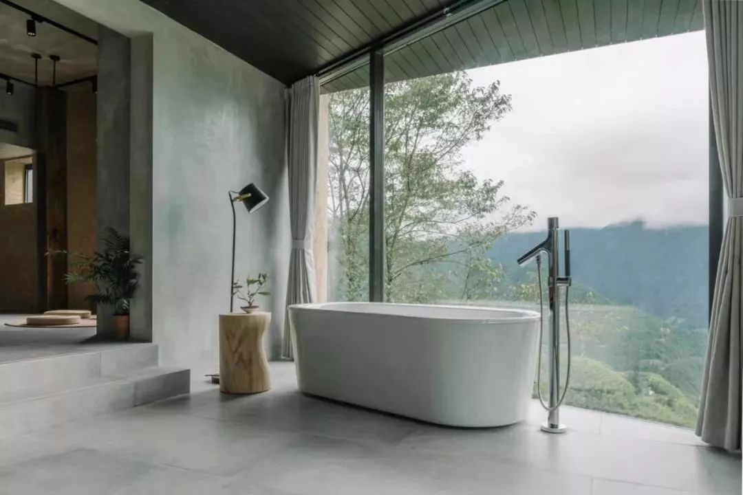 ▲ 开放的浴缸,可以透过落地窗欣赏自然风景 ©史佳鑫