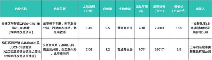 中交新凤溪(上海)城市建设发展有限公司以总价7.28亿拿下青浦区华新镇QPS6-0201单元29-06地块,楼面价约19544元/㎡。