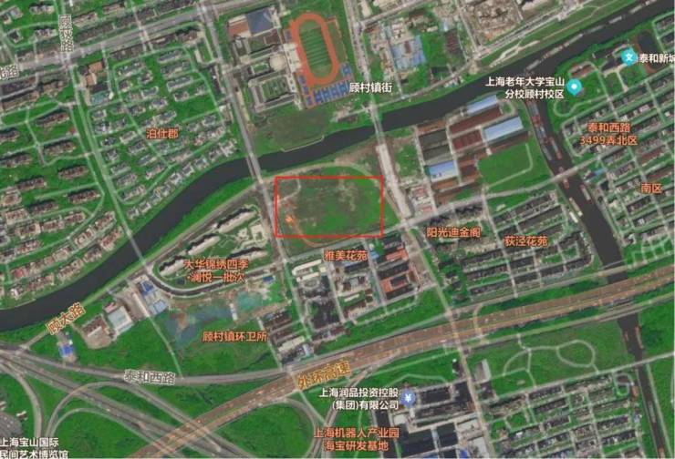 该地块位于宝山区顾村老集镇改造范围内,东临教育南路,南靠顾新路,西接电台南路,北至顾太路,靠近大华锦绣四季项目。地块邻近S20外环高速沪太路立交,但距离轨道交通站点有一定距离。