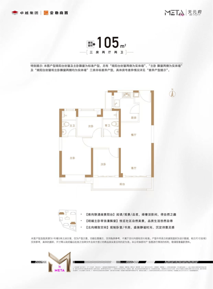 META CITY|天元府收官房源户型图出炉,2栋约105㎡3房已过会