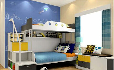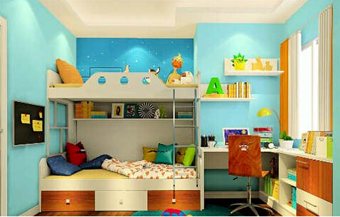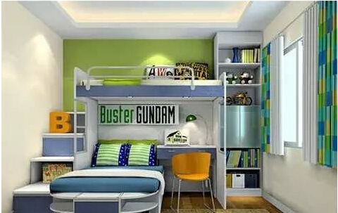 L型上下床更灵活,床尾可以设计成圆弧型,还可以把衣柜换成小书桌哦!