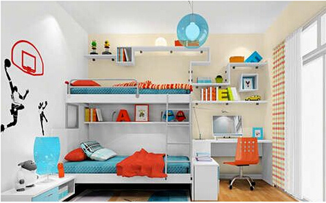 房间很小,想要实现空间利用的较大化,可以选择基本款的上下床。这样的上下床可以让房间看起来干净利落。当然,如果想让它充满温馨的感觉,也可以做成这样。床底的空间容易积尘,不如变成抽屉,增加收纳。