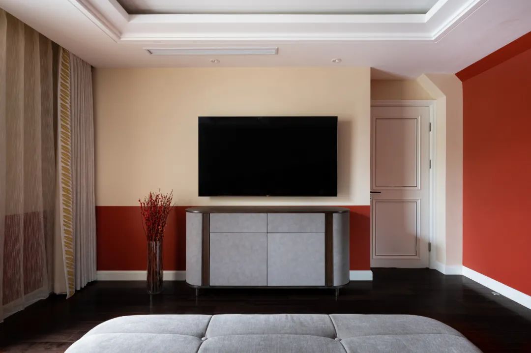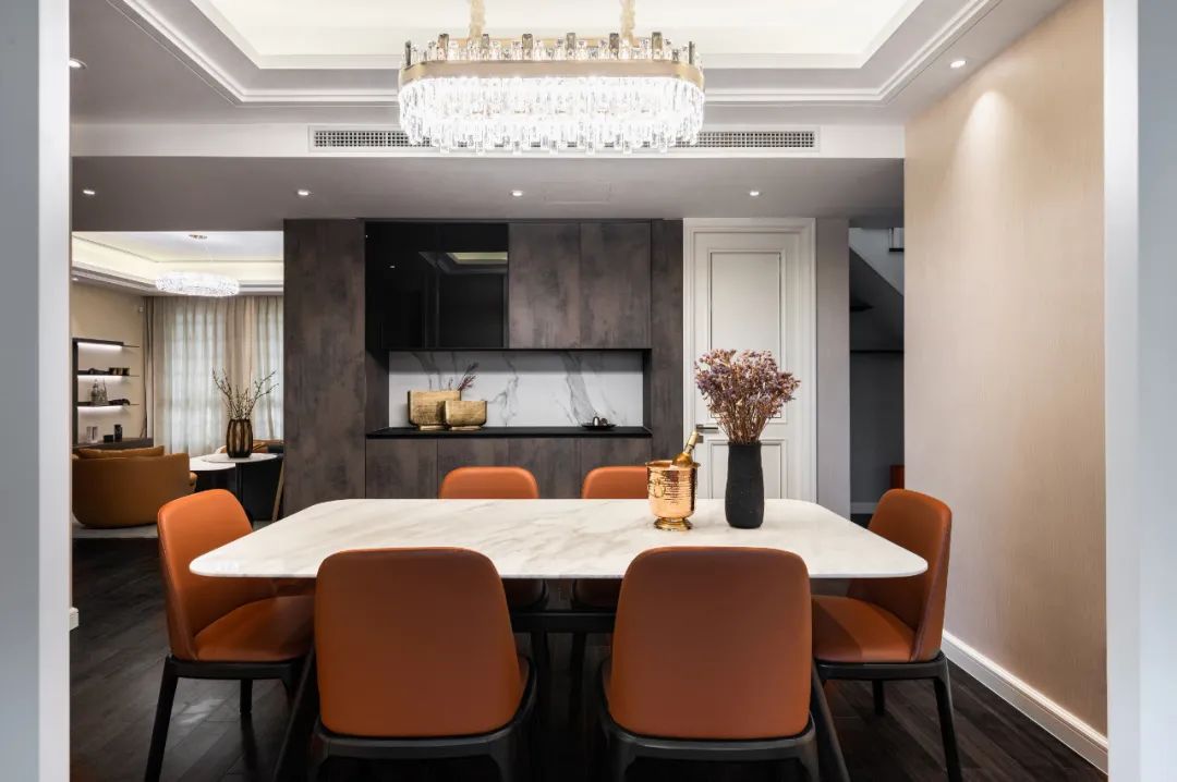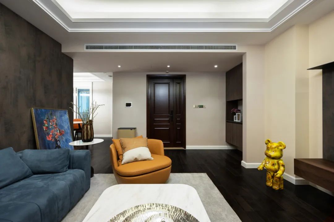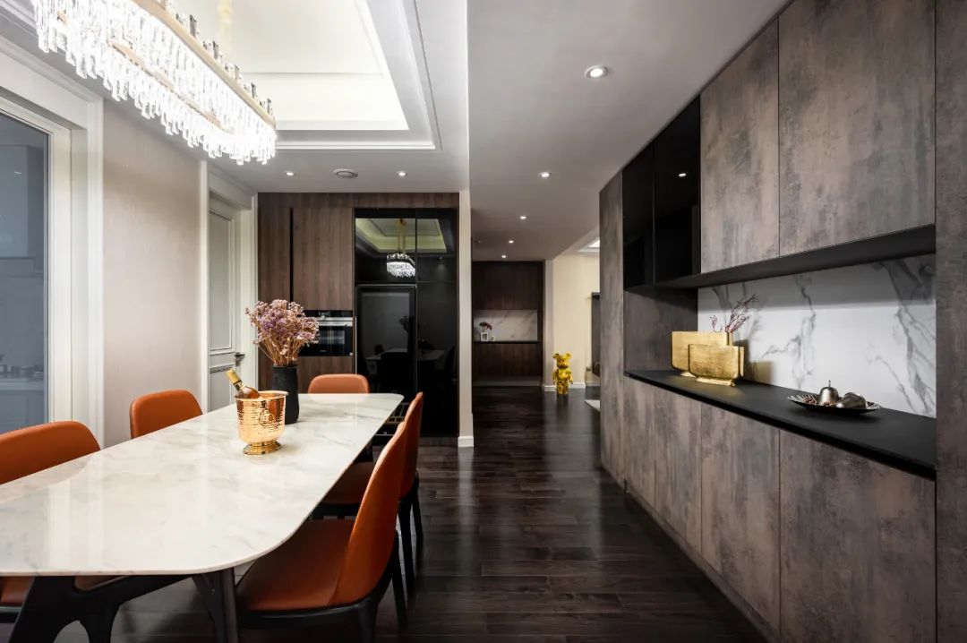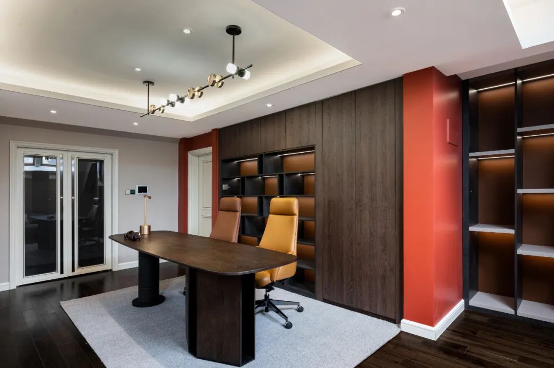 张烨建筑事务所于2020年完成一套复式洋房。项目位于上海市浦东新区大华斐勒公园,本次设计是为一对即将结婚的年轻人打造一间舒适生活的新居。这间复式精装房使用面积为200平方米,为四室三厅的复式户型。设计师重新设计了墙面、柜体、及家具,使整个家的储物能力大大增加;立面设计采用了红黄二色,结合墙面挂板和柜体,丰富了整个空间。家具设计在满足功能需要的同时,结合了使用者对artdeco轻奢美学的理解,打造出属于业主少有的现代轻奢新居。