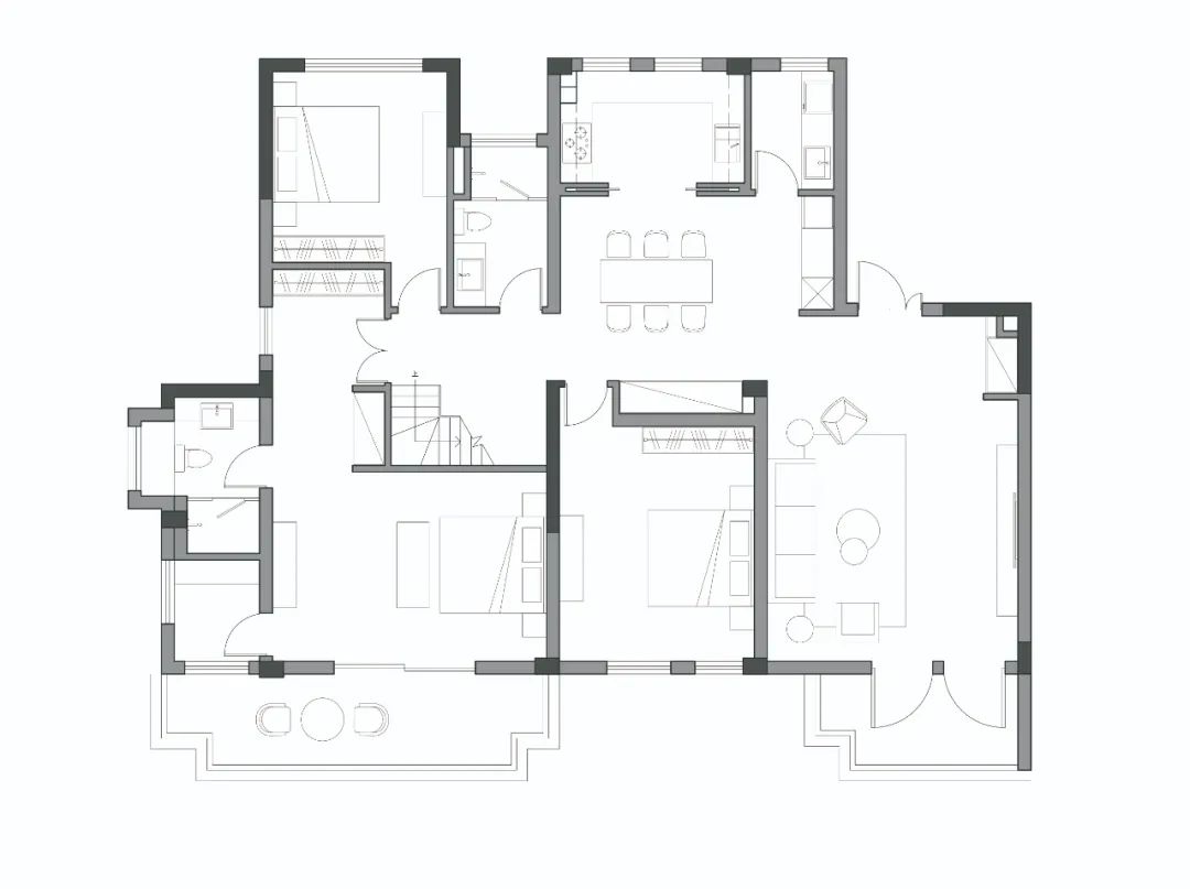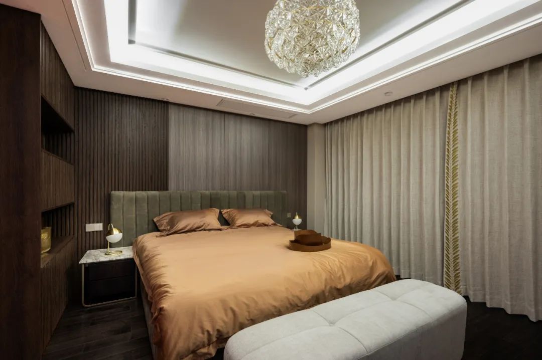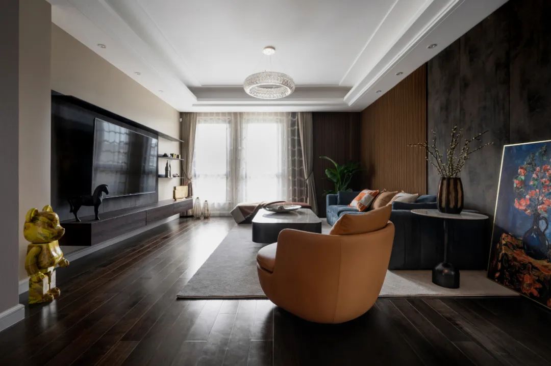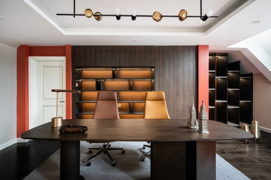 张烨建筑事务所于2020年完成一套复式洋房。项目位于上海市浦东新区大华斐勒公园,本次设计是为一对即将结婚的年轻人打造一间舒适生活的新居。这间复式精装房使用面积为200平方米,为四室三厅的复式户型。设计师重新设计了墙面、柜体、及家具,使整个家的储物能力大大增加;立面设计采用了红黄二色,结合墙面挂板和柜体,丰富了整个空间。家具设计在满足功能需要的同时,结合了使用者对artdeco轻奢美学的理解,打造出属于业主少有的现代轻奢新居。