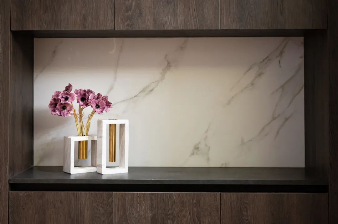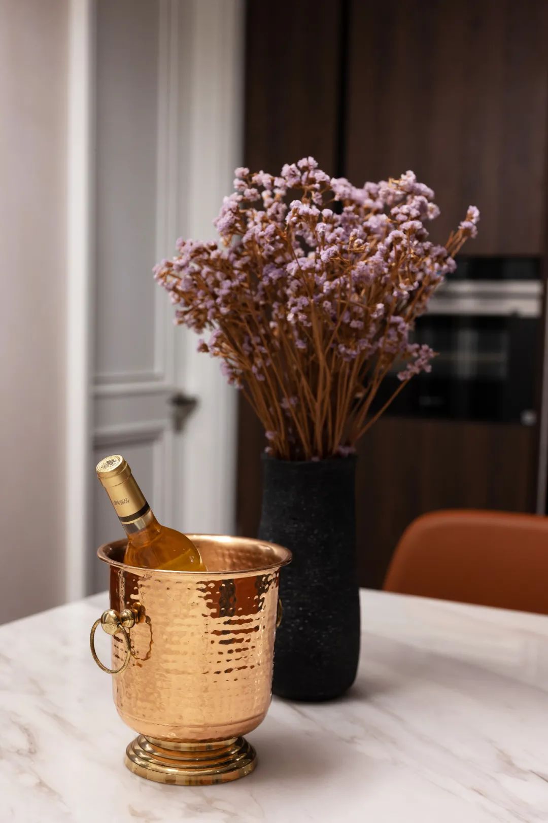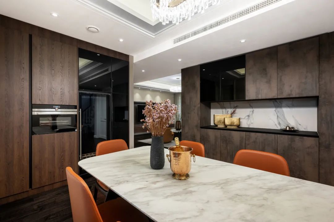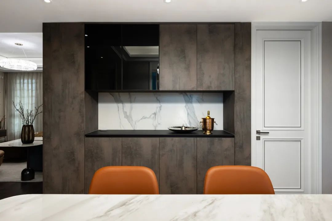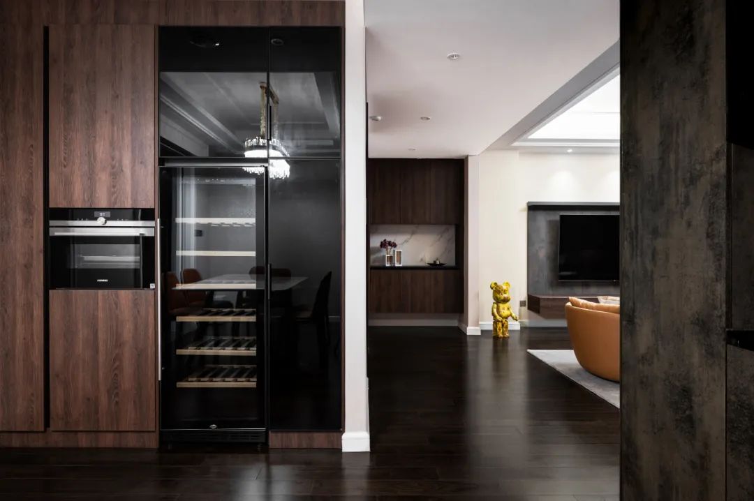 独立恒温酒柜与定制柜的结合形成风格统一嵌入式酒柜的感觉