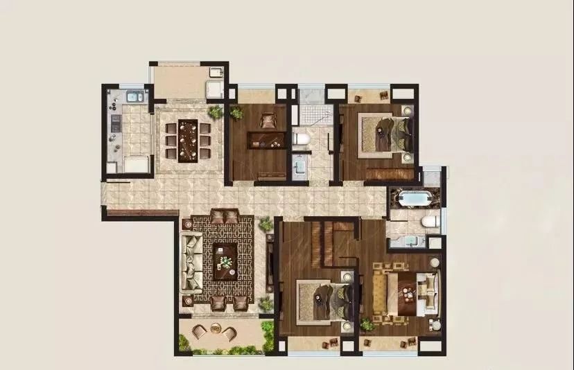 但凯利直到146/166㎡的建面才做到这些。而这个面积段放到大的市场里面去,三套房(三个私用+一个公用卫生间)的配置都不在少数。