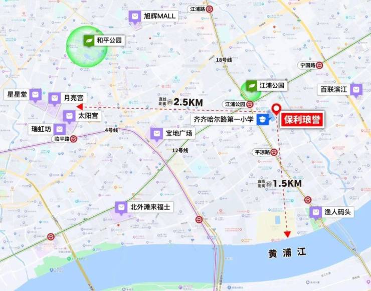 教育方面,项目与齐齐哈尔路第一小学仅一路之隔。齐齐哈尔第一小学作为杨浦的老牌学校,已有七十年历史底蕴,在80年代初就已经是杨浦的区重点,且教育质量和口碑保持在教育强区杨浦的区重点水平。同时,项目周边还有控江二小(2km)、打虎山路第一小学(3km)等教育资源。