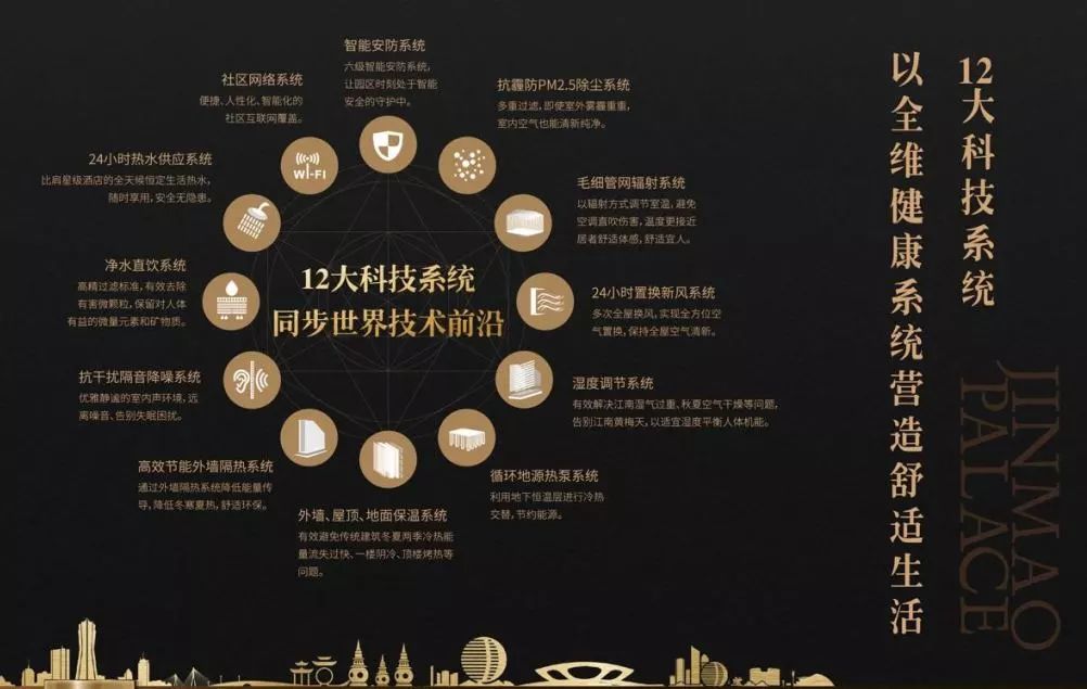 大宁金茂府秉承“房子是用来住的”的筑家理念,从“温度、湿度、空气、阳光、声音、水”六大基本生命元素出发,同步欧洲12大科技系统,包括循环地源热泵系统、毛细管网辐射系统、24小时新风除霾系统等,让全家远离春潮、秋燥、酷暑、寒冬,不仅住得舒适,更住得健康。