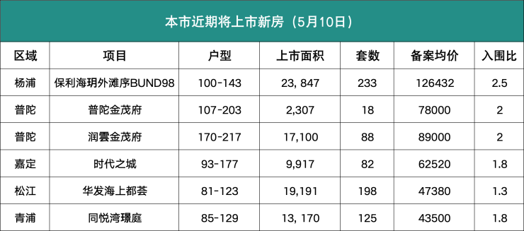 5月10日,网上房地产公示新一批过会项目,新增上市6个商品住房项目,共约8.55万平方米,合计734套房源,分布在杨浦、普陀、嘉定、松江以及青浦。