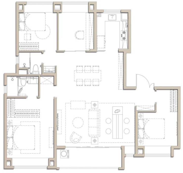 项目为精装交付,中央空调、地暖、新风三大件一应俱全。