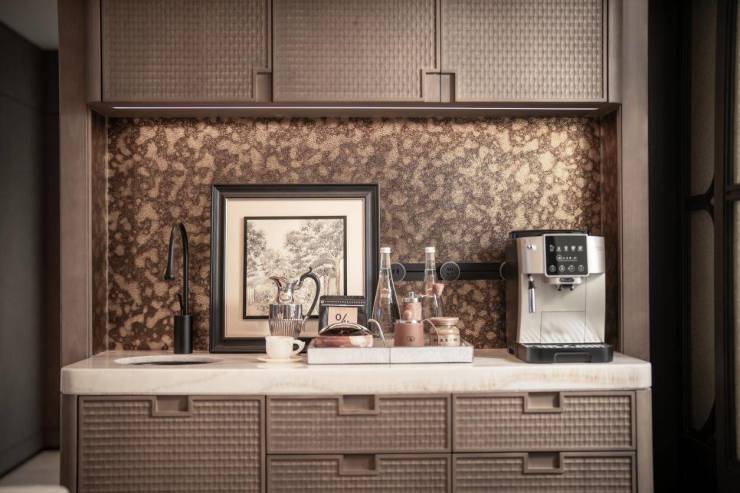 每个房间都设有飘窗,采光和空间感极佳,而三阳台的设计不仅实现了南北通透,还丰富了生活场景。厨房配备了岛台,1㎡定制咖啡吧甚至配备了上下水功能,无论是准备早餐还是烘焙,都非常方便。主卧设有三段式卫浴空间,细节之处尽显周到。卫生间还特别采用了科勒一体式镜柜,与市面上常见的分装拼接柜形成了鲜明对比。