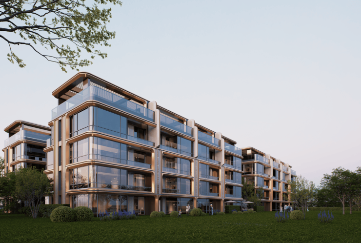 作为杨浦滨江惟一新规抬板墅区,项目将社区地面整体抬升约两米,有效阻隔外部视线干扰与城市噪声,以物理高度换取精神宁静。同时规划下沉式庭院,结合叠水、绿植形成立体园林。