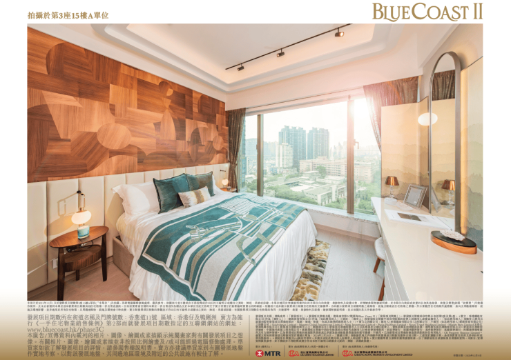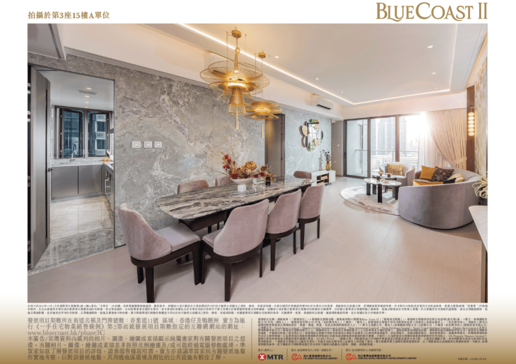由长江实业集团有限公司(「长江实业」) 及港铁公司合作发展、并位于港岛南区的地标住宅发展项目「Blue Coast II」持续热销,累售510伙,套现金额达约73亿。发展商今日向传媒展示全新4房现楼示范单位,位于第3座15楼A单位,属4房双套连储物房及洗手间,实用面积1,267平方呎。