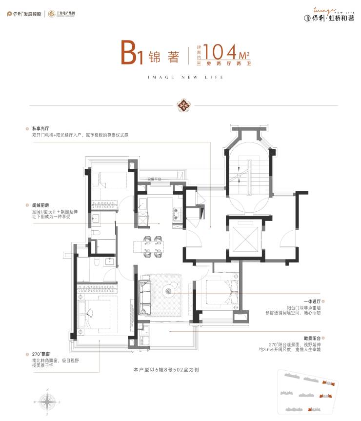 建面约104—128㎡类一梯一户精奢宅