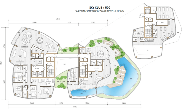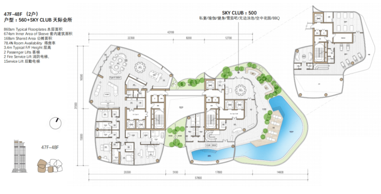 47F-48F户型面积:560㎡+SKY CLUB天际会所