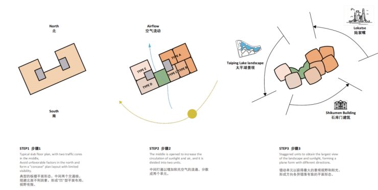 可以看到,这种设计方法打破传统户型水平分布的做法,按照下小上大的原则合理分布不同价值户型,达到景观的最大化利用。