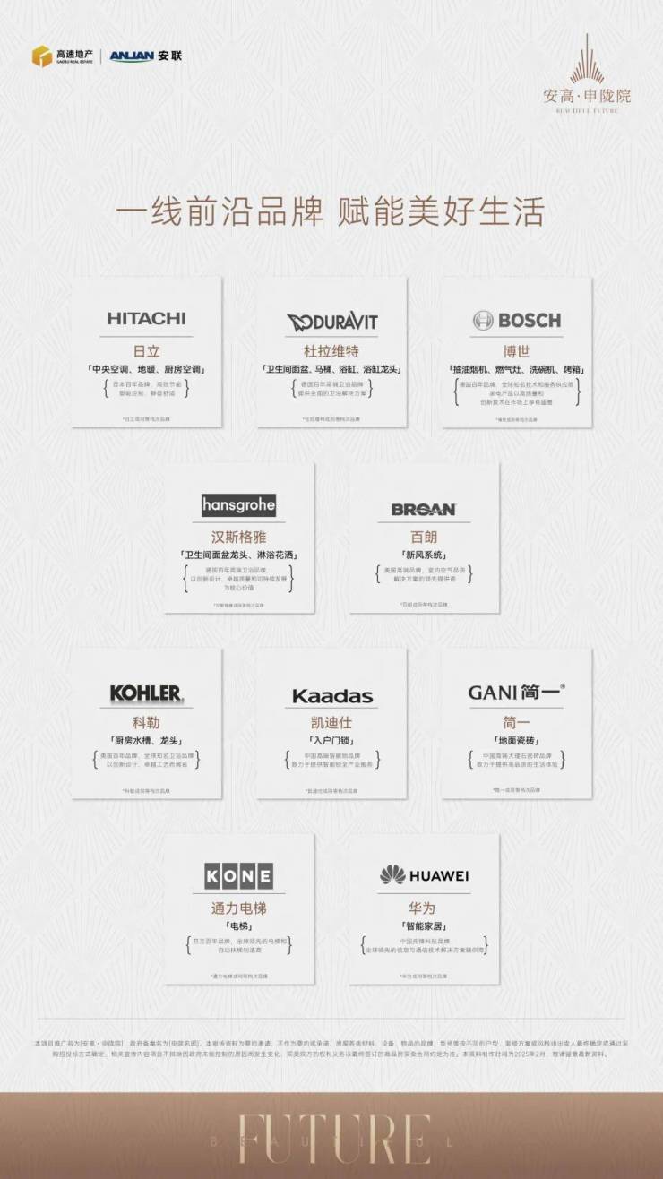同时,项目从人性化角度细致考量,搭配华为智能系统,臻选日立冷空调、百朗新风、博世厨电四件套、杜拉维特/汉斯格雅洁具等一线精装大牌,臻装精奢空间,质承进阶生活。