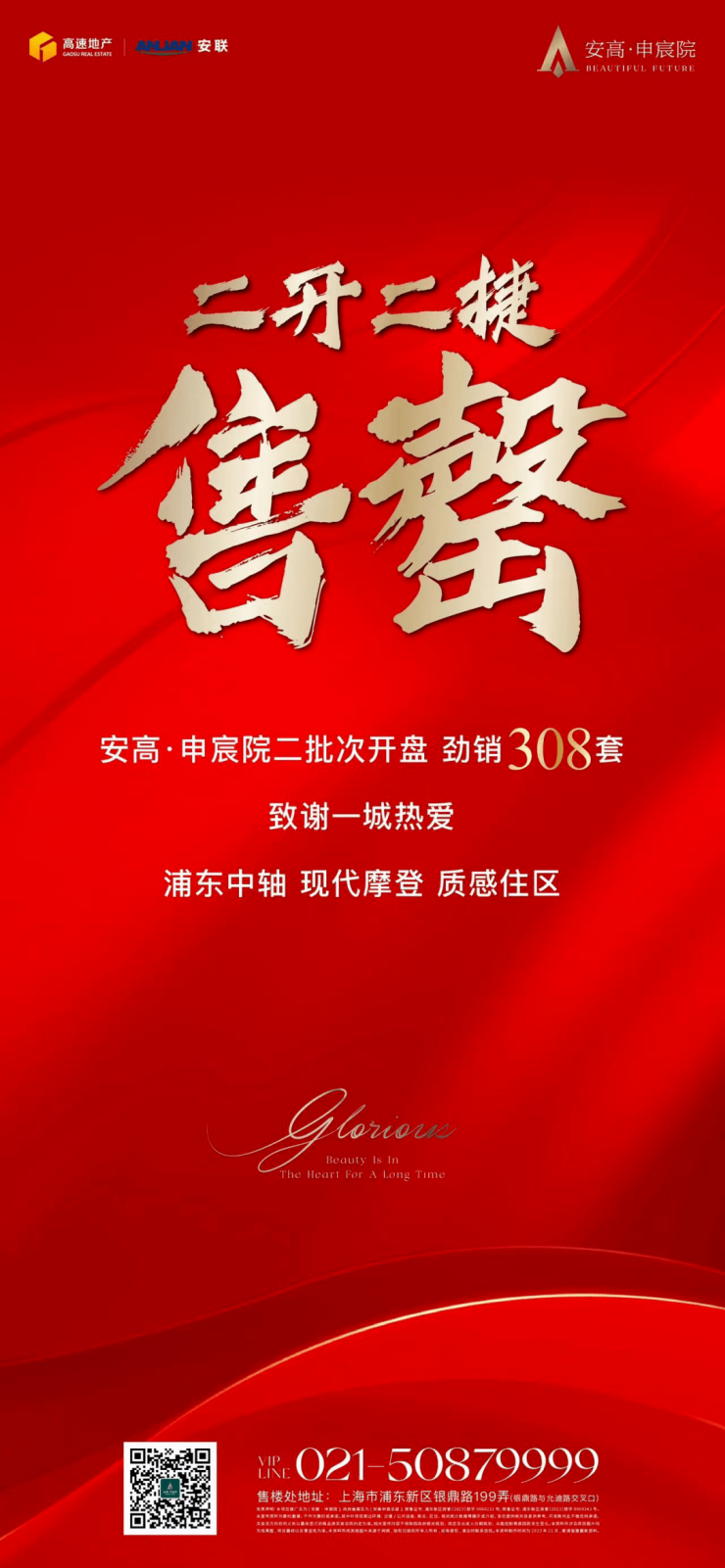 11月23日,安高·申宸院二期开盘再次交出亮眼成绩单,308套房源全部售罄,劲销约25.1亿元!