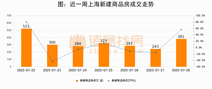 【上海成交日报】07月28日新房成交381套、二手房545套;涨价房源66套