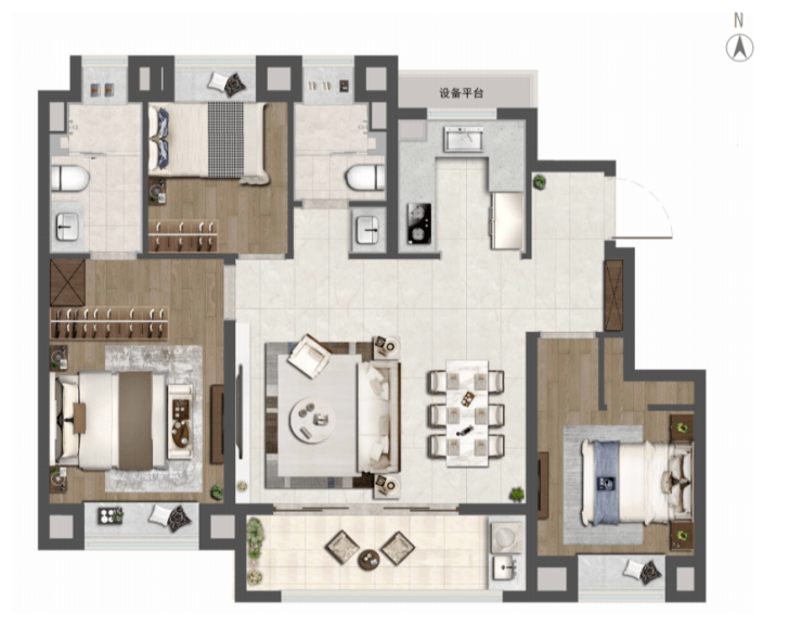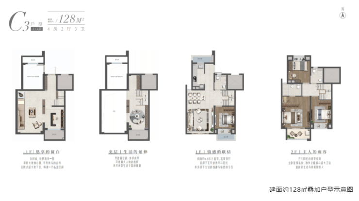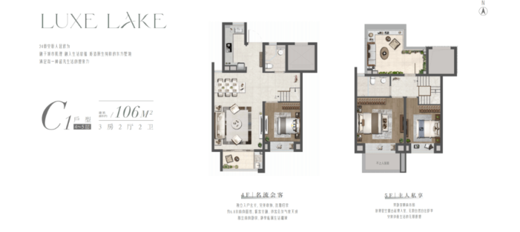 中叠大平层设计,上叠有露台+高附赠