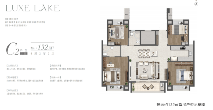 第三.高得房率洋房户型,更有青浦新城臻稀叠加。得益于低密洋房,项目得房率高,据悉一梯两户设计,得房率约80%-82%,居住舒适性和性价比被进一步放大。